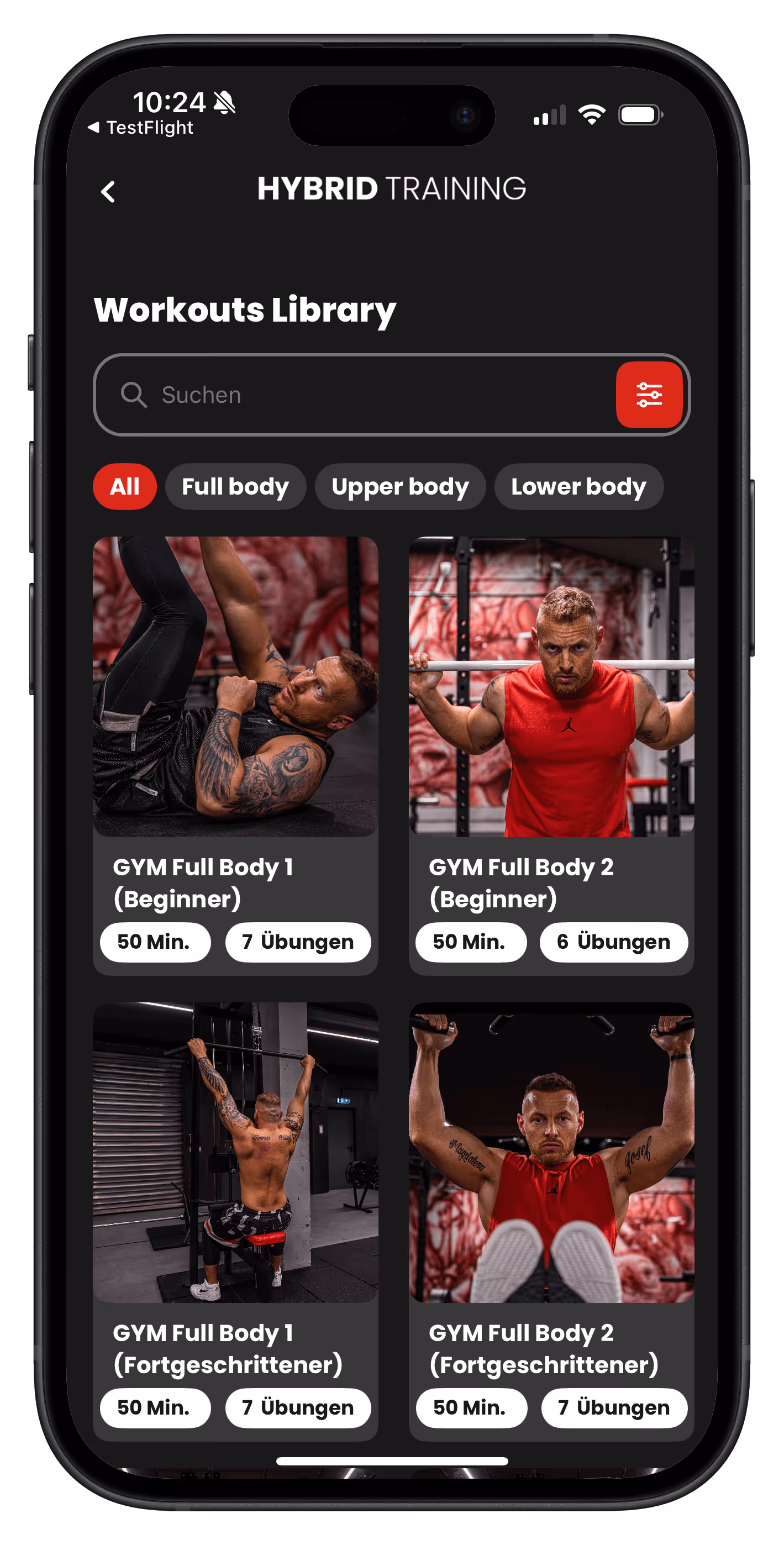 Wir haben für jede Muskelgruppe, für jeden Split und für jedes Level die passenden Workouts parat. Du wirst durch jedes Workout Übung für Übung konkret geführt, absolut verständlich und intuitiv. So dass dir nichts mehr im Wege steht, deine Ziele zu erreichen!